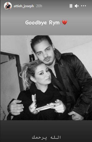 بدوره ودّع النجم اللبناني جوزيف عطية زميلته في ةلموسم نفسه من البرنامج بصورة قديمة تجمعه بها بالأبيض والأسود وعلّق عليها قائلاً: "وداعاً ريم الله يرحمك".