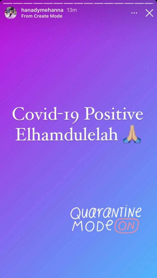 كشفت الفنانة الشابة هنادي مهنى عن إصابتها بفيروس كورونا، وذلك بعدما أجرت مسحة طبية وجاءت نتيجتها إيجابية، حيث كتبت عبر خاصية القصص المصورة الملحقة بحسابها على "إنستغرام": "كورونا إيجابي الحمد لله".