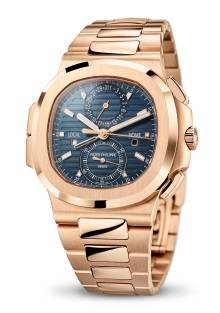 تم إطلاق كود 5990/1 Nautilusمن الإستانليس ستيل في عام 2014 مع ميناء ذو تدرج أسود إلى المحيط، ويجمع بين ثلاثة تعقيدات مفيدة وقابلة للتشغيل بسهولة: كرونوجراف فلاى باك، ووظيفة وقت السفر (منطقتان زمنيتان) وتاريخ تناظري عند مكان الساعة 12 متزامن مع التوقيت المحلي.تقدم Patek Philippe الآن هذا الموديل في إصدار جديد من الذهب الوردي يتقابل بشكل جميل مع الميناء الأزرق المنقوش أفقيا ، وكذلك مع علامات الساعات والعقارب من الذهب الوردي ذات الطلاء البراق.
