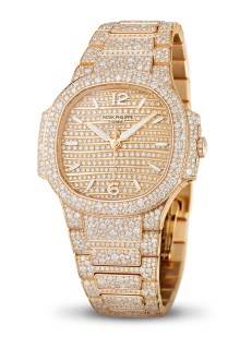 يأتي التصميم الأيقوني لساعات Nautilus للسيدات في إصدارات مختلفة من ساعات المجوهرات الراقية مرصعة بماسات بقطع بريليانت أو ماسات باجيت. قدمت Patek Philippe من عام 2013 إلى عام 2018موديلا من الذهب الوردي يتضمن ميناءا مزينا بالماس في ترصيع رصف عشوائي (يشار إليه أيضا باسم ترصيع الثلج) (الكود 7021/1R-001).