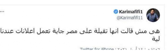 ما زالت قضية إعلان الفنانة اللبنانية ميريام فارس في مصر تتفاعل حيث تعرّضت لهجوم من الفنان المصري كريم عفيفي، والذي كتب عبر حسابه الخاص في "تويتر": "هي مش قالت إنها تقيلة على مصر جاية تعمل إعلانات عندنا ليه؟".