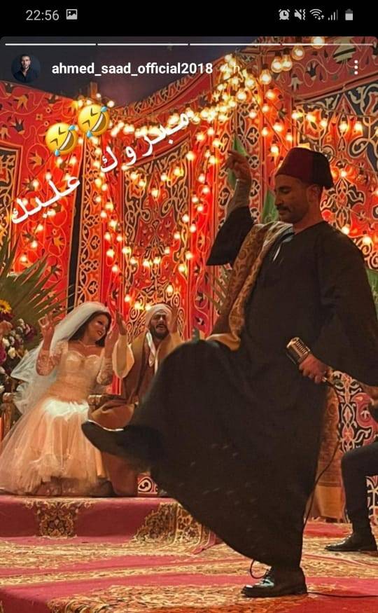 وحملت الصور معاني ساخرة من وجوده في حفل زفاف زوجته، كما أشارت إلى سعادته بالتخلص منها وتورّط رجل آخر في الزواج بها، حتى وإن كان ذلك في مشهد درامي، إذ علّق سعد على الصورة قائلاً: "لما تدي لصاحبك الكانز وانت تافف فيها".