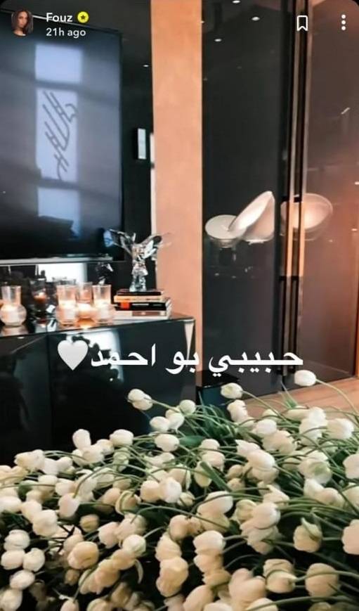 ونشرت الفهد صورة لمجموعة كبيرة من الزهور التي تلقتها كهدية من زوجها بمناسبة يوم ميلادها الـ30، وعلقت عليها "حبيبي بو أحمد"، لتكشف من خلاله عن استعدادها لاستقبال طفل ذكر.