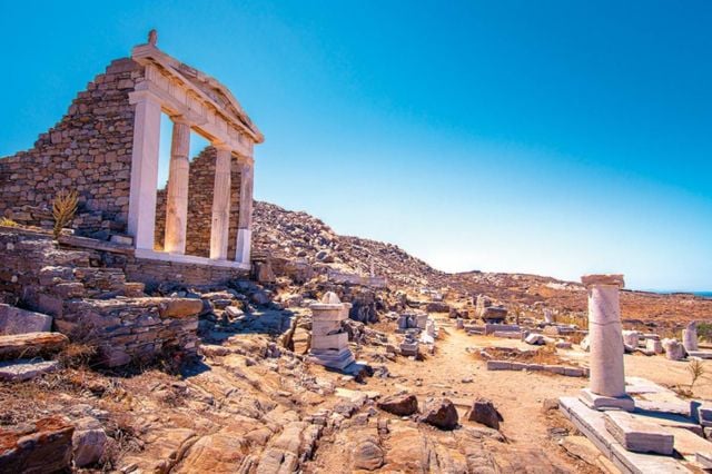 ووفقاً للأساطير فإن ديلوس هي مسقط رأس أبولو إله الموسيقى، علماً أنه يمكن الوصول إلى الجزيرة بواسطة قارب أُجرة من جزيرة ميكونوس وتستغرق الرحلة حوالى 20 دقيقة.