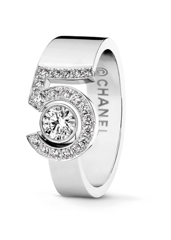 خاتم ETERNAL N°5 المصنوع من الذهب الأبيض عيار 18 قيراطاً رُصّع بالماس الذي يرسم الرقم 5