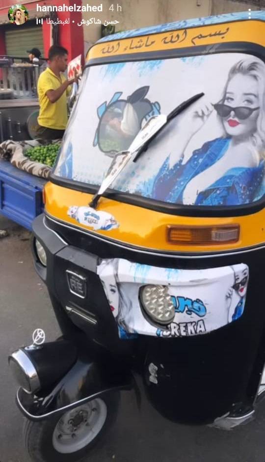 فوجئت الفنانة هنا الزاهد بانتشار صور لمركبة التوك توك في مصر وقد وضع صاحبه صورها على كل جزء فيه، لتعبر عن سعادتها بسبب ذلك الأمر.
