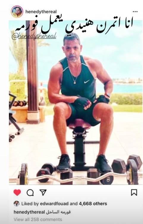 وأحدثت الصورة ضجة كبيرة بعدما استخدمها هي نفسها النجم محمد هنيدي مُحدثاً تغييراً فيها بتطبيق الفوتوشوب ليبدو فيها كأنه هو من يمارس الرياضة والفورما.