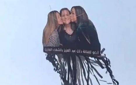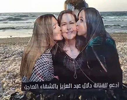 وتحمل الطائرة الورقية صورة النجمة الراحلة وبقربها ابنتاها إيمي ودنيا وهما تقبّلانها، وقد كُتب عليها: "ادعوا للفنانة دلال عبدالعزيز بالشفاء العاجل".