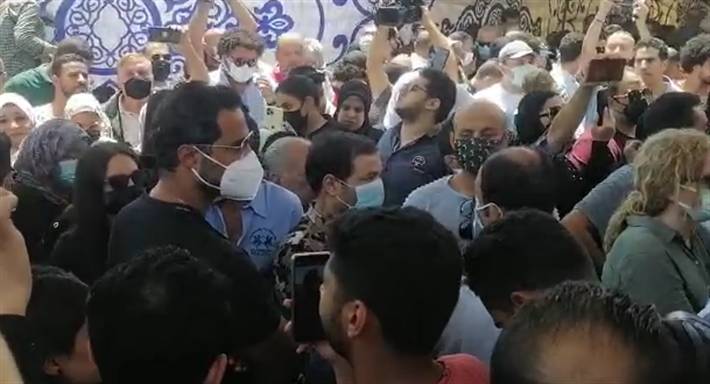 بالفيديو - مشاجرة أمام مدفن دلال عبد العزيز وصهرها ينفعل... هذا ما حدث