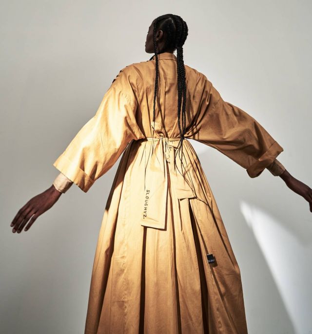 تحتل علامة Slouchyzالصدارة في عالم الأزياء المحلية ويتم الاحتفاء بها لابتكارها ملابس فنية تجمع بين عناصر مختلفة وتعكسدروب الخيال التي تغوص بها ابتكارات العلامة. تقدم المجموعة أزياءً تحمل نفس الطابع التقدمي المميز المعتاد من العلامة حيث تضم قطعًا ذات القصّات غير التقليدية التي تتميز بها Slouchy’Z بالإضافة إلى قطع منسدلة بشكل طبيعي، وأخرى ذات شراشيب وغرز مختلفة على أقمشة متعددة الخامات منها الكريب الفرنسي والقطن الحريري والكتان الفوال.