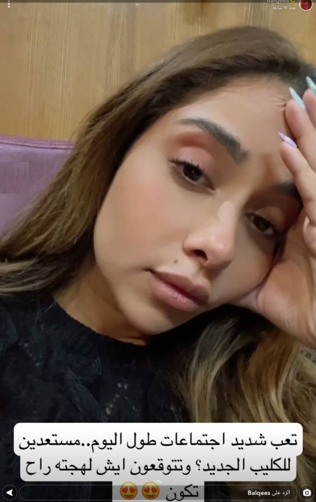 وأرفقت بلقيس الصورة بتعليق بسيط كتبت فيه: "تعب شديد.. اجتماعات طول اليوم"، في إشارة الى التحضيرات التي ترافق عملها الجديد.