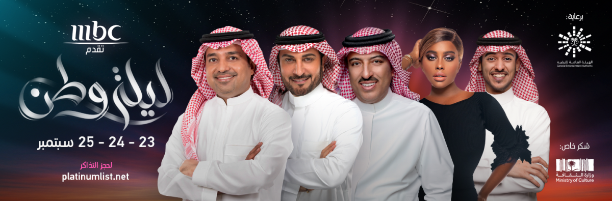 لمناسبة اليوم الوطني السعودي 91، تقدم "مجموعة MBC" أوبريت "ليلة وطن"، أضخم أوبريت غنائي استعراضي من نوعه، تحت رعاية الهيئة العامة للترفيه في المملكة العربية السعودية، مع شكر خاص لوزارة الثقافة السعودية – يُعرض على MBC1 في 25 أيلول (سبتمبر) تمام الساعة العاشرة ليلاً بتوقيت المملكة.