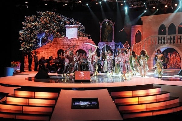 الفكرة هي طبعاً لمهندس الديكور، ومما لا شك فيه أننا لو أردنا وضع كل المعالم الأثرية في لبنان، لما كانت مساحة المسرح لتتسّع أو تكفي بما أنها كثيرة جداً.