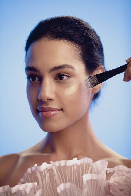 ضعيه بأطراف أصابعك أو باستعمال فرشاة كريم أساس سائل وذلك بضربات خفيفة على كامل الوجه.