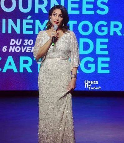 وبمجرد البدء في عرض فيلم تسجيلي عن المخرجة الراحلة مفيدة التلاتلي، ظهرت النجمة التونسية بكامل أناقتها بفستان مبهر، وتحدثت بصدق عن سعادتها بالمهرجان وقالت بصوت يخالطه البكاء: "اعتدت ان احكي معها وليس عنها وهي لم ترحل وموجودة بين وجدان كل التوانسة".