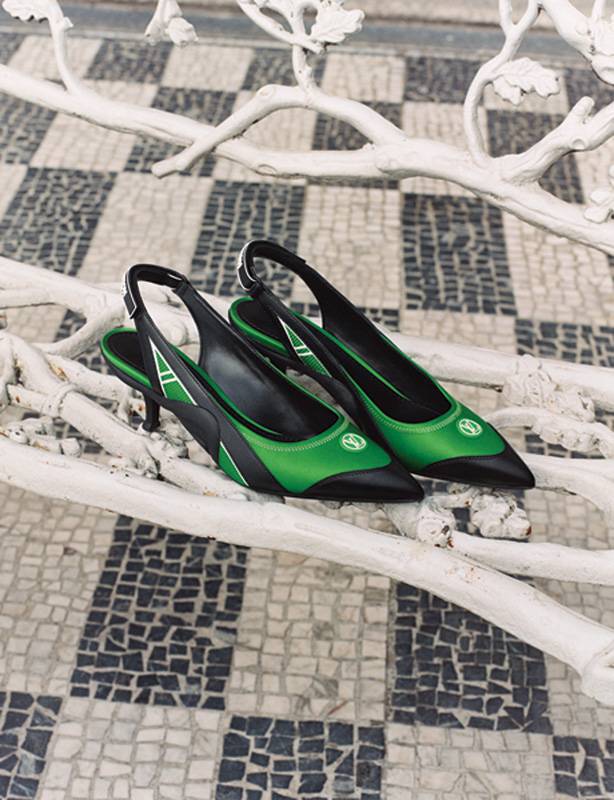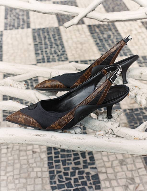 وبالطبع لم تُنسَ شعارات الدار: يزيّن شعار LV صغير من المطاط الجزء العلوي من الحذاء المفتوح، في حين أن الحزام الخلفي، الذي أُعيد تفسيره هنا من الفيلكرو اللاصق يشمل شعار Louis Vuitton. الحذاء التقني والأنثوي والحضري الأنيق يأتي أيضاً في تصميم بكعب مسطّح. وفي تحديث جديد للحذاء الرياضي الشهير LV Archlight، يتطابق الحذاء المفتوح LV Archlight بشكل مثالي مع أسلوب كيارا فيراني Chiara Ferragni الفريد، والذي تم تصويره في ميلانو في حملة حصرية.