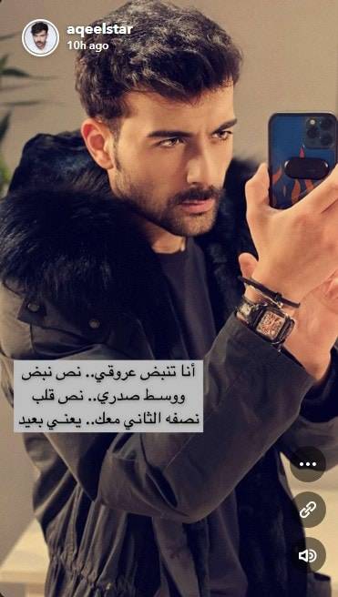 وفي أول تعليق غير مباشر، نشر عقيل صورة له وكتب عليها: "أنا تنبض عروقي.. نص نبض، ووسط صدري.. نص قلب، نصفه الثاني معك.. يعني بعيد"، وكذلك نشر صورة ثانية له وكتب عليها: "حاجات يحييها العتب مثل اللقى، مثل السلام.. وحاجات يقتلها الطلب مثل الوله والاهتمام".