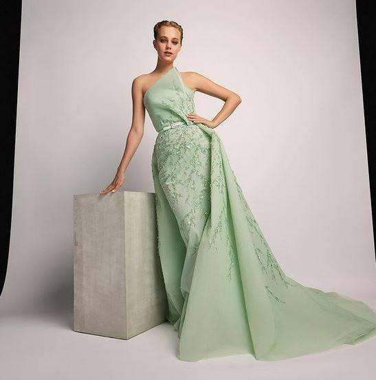 واعتمد المصمّم اللبناني على الألوان الخفيفة والمبهرة، مستخدماً مهارته في التصميم لابتكار تشكيلة فريدة بلمسة من الغموض. كما تتألق التصاميم العصرية بقصّاتٍ هندسية جميلة تُبرز جمال المرأة.