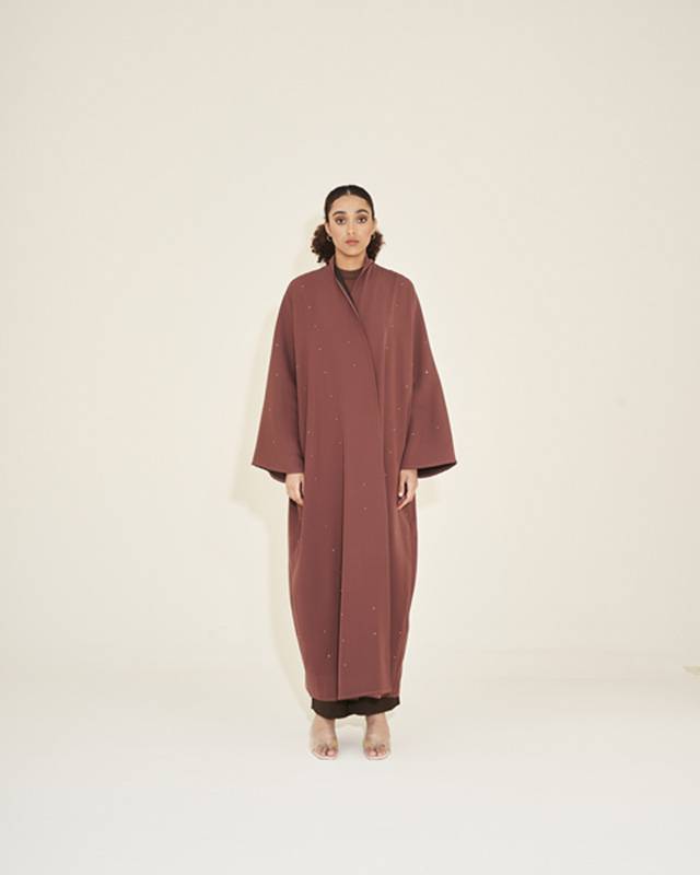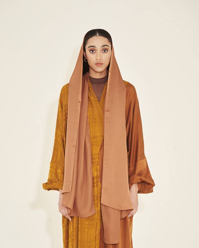 وتستخدم علامة 1309 في هذه التشكيلة خياراتٍ متنوعة من الأقمشة والأنماط، بدءاً من الشيفون الناعم وجلد الغزال خفيف الوزن والجلود النباتية والأقمشة الجذابة التي يمكن ارتداؤها على الوجهين، وصولاً إلى الحرير المزيّن بالنقشات والتقليمات المتقاطعة. وتنسجم في عباءة "دون" بشكلٍ خاص التوشيحات الكامدة للونَي الأسود والأبيض مع أقمشة الكريب اللامعة بتناغمٍ تام لتوحي بالمشهد المميز للسماء قبل لحظات من شروق الشمس. وتعتمد العلامة التطريزات والتفاصيل المميزة على الأوشحة لتعزيز جمال الإطلالة. وهذا ما يظهر في نموذج وشاح "هيد إن ذا ستارز" اللامع الذي يضفي مزيداً من الإشراق على الوجه، مما يضمن تعزيز شعور عاشقات الموضة بالثقة والجاذبية.