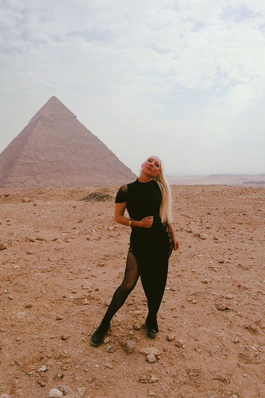 بالصور - مغنية أميركية تقتحم هرم أمنمحات الأسود لتصوير كليب غنائي مثير