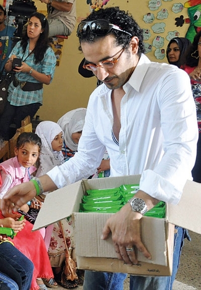 أحمد حلمي يوزع حقائب الطعام على التلاميذ