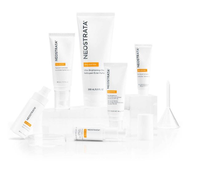 وجرى ابتكار مجموعة Enlighten من NEOSTRATA® لمعالجة العديد من تحديات تغير اللون، بما في ذلك البقع الداكنة وتفاوت لون البشرة. وتساعد علاجات البشرة القوية مثل فيتامين سي والريتينول والنيوغلوكوزامين على تقليل تفاوت لون البشرة والبقع الداكنة وإظهار البشرة بشكل متألق. وتشمل المنتجات المتوافرة في المملكة العربية السعودية Illuminating Serum وهو منتج يستهدف تغيير لون البشرة وتفاوت ألوانها. ووجد 95% من المستخدمين لهذا المنتج أن البقع الداكنة تلاشت وأن لون البشرة أصبح أكثر تناسقاً بعد ثلاثة أسابيع من استخدامه.