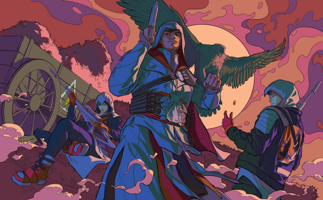 ويجسد الزي التعاون بين فري فاير وAssassin’s Creed® المخصص للذكور، إذ يجمع بين الملابس التقليدية الخاصة بفري فاير وأبرز ميزات Assassin’s Creed® والتي تشمل غطاء الرأس والسترة الجلدية والشعار.