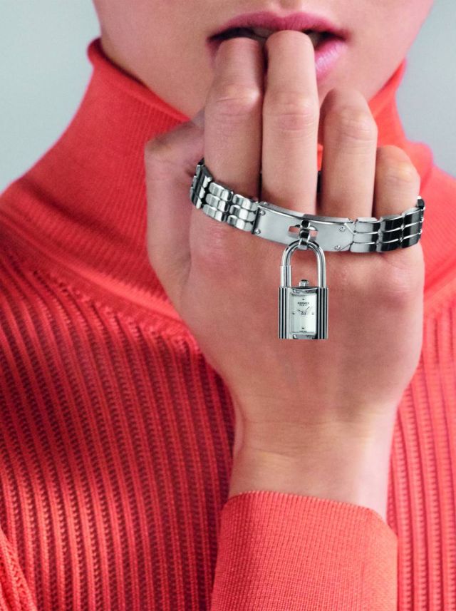 وتشكّل الساعة إبداعاً قوياً ومميزاً من "هيرميس"، وقد استوحي مشبكها من حقيبة اليد الشهيرة التي صمّمها روبير دوماس في ثلاثينيات القرن الماضي. وهي مصمّمة بخمسة إصدارات من الذهب الوردي أو الفولاذ، مرصّعة أو غير مرصعة بالماس، مع عرق اللؤلؤ الفاخر أو مطليّة بالفرنيش الأبيض. مع إمكانية تحويلها الى عقد جلدي من جلد التمساح الأسود أو جلد العجل الأملس.