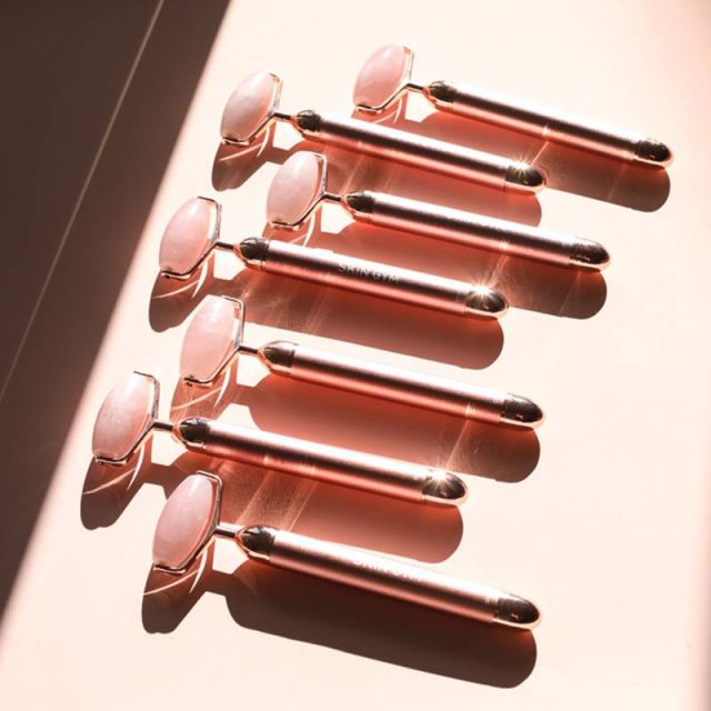 تألقي جسدياً ونفسياً مع رولر الوجه من "سكن جيم" المتاحة بأحجار اليشم والكوارتز الوردي الكريمة. اظهري جمالك الداخلي مع "روز كوارتز فايبراتينج ليفت آند كونتور بيوتي رولر" الذي يمتلك قدرة فريدة على سحب كل السموم بينما تعطي خصائصه الشفائية بشرتك تألقاً رائعاً. إذا كنت تبحثين عن السلام الداخلي والسكينة، فلن يهدئ "جايد فايبراتينج ليفت آند كونتور بيوتي رولر" بشرتك فوراً فقط، بل سيساعد أيضاً على توازن مراكز القوة الروحية في جسمك وإزاله توترك. بالإضافة إلى أنه مثالي للروتين المسائي الخاص ويمنحك نوماً مريحاً.