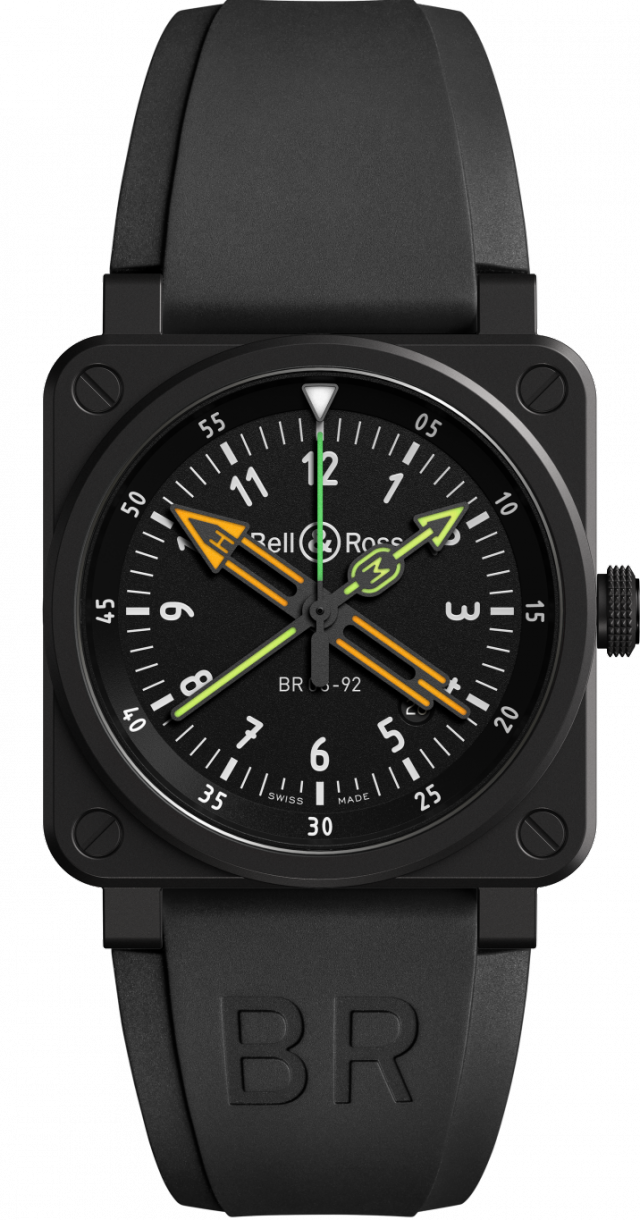 تتميز ساعة BR 03-92 Radiocompass، التي اشتق اسمها من أداة الملاحة اللاسلكية، ساعةRadio Compass، ذات المؤشرات الملونة الأصلية والمميزة تضمن إمكانية قراءة مثلى.
