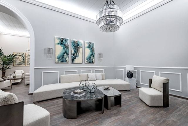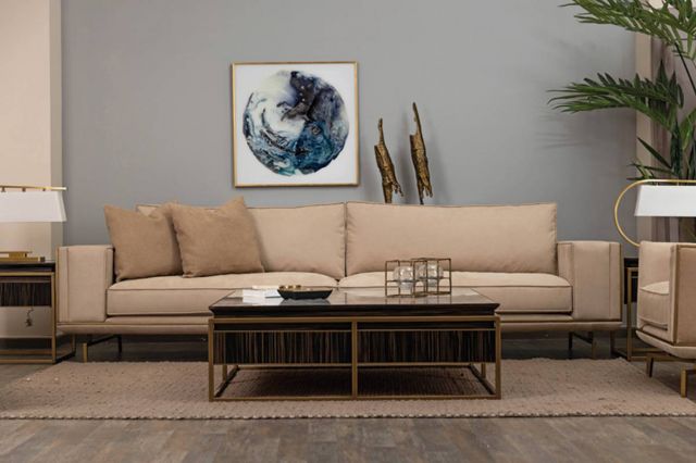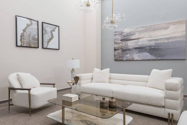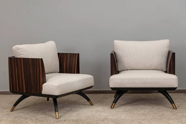 ثمة عامل آخر يُغني الديكور، ألا وهو استخدام مواد مختلفة في قطع الأثاث الرئيسة مثل الإنارة، والأكسسوارات، وطاولة القهوة، والطاولات الجانبية، ولوحات الجدران. ولعلّ أبرز المواد التي تخدم هذا النوع من الديكور بشكل رائع هي الرخام بنقشات فنية وألوان خافتة.