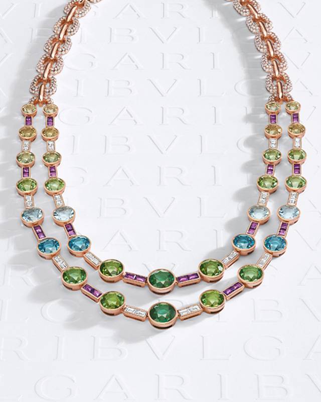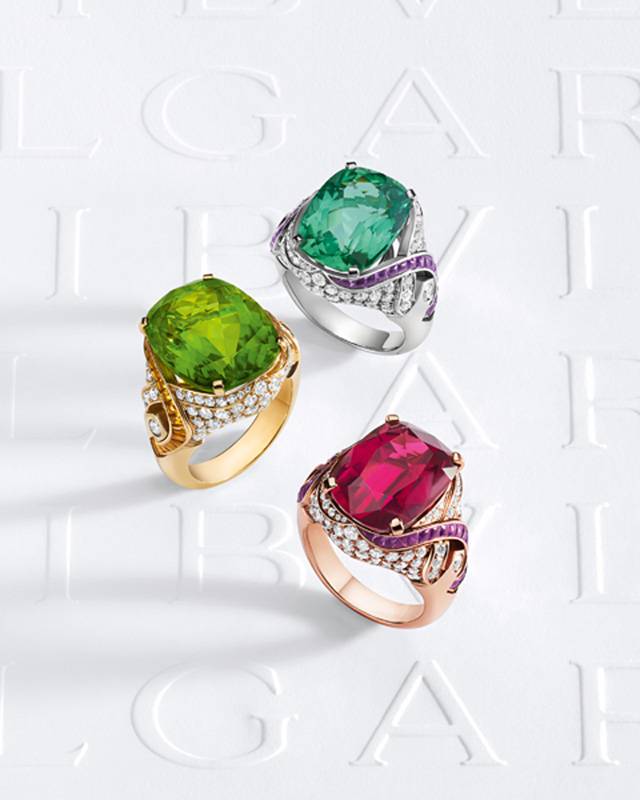 احتفت علامة بولغري بالأحجار الثمينة الفاخرة التي تشكل أندر وأجمل هدايا الطبيعة، حيث أضافتها إلى تصاميمها مع مزيج فريد