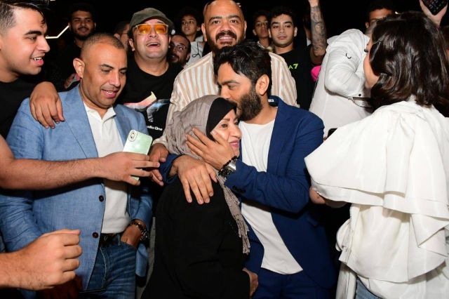 وحرص على حضور الاحتفال صنّاع العمل وأبطاله، وزوجة تامر بسمة بوسيل، ووالدته وشقيقه حسام، وعدد من الملحنين والشعراء والفنانين والصحافيين والإعلاميين، وذلك في إحدى دور السينما الكبرى في مدينة 6 أكتوبر، قبيل عرض الفيلم للجمهور اليوم الخميس.