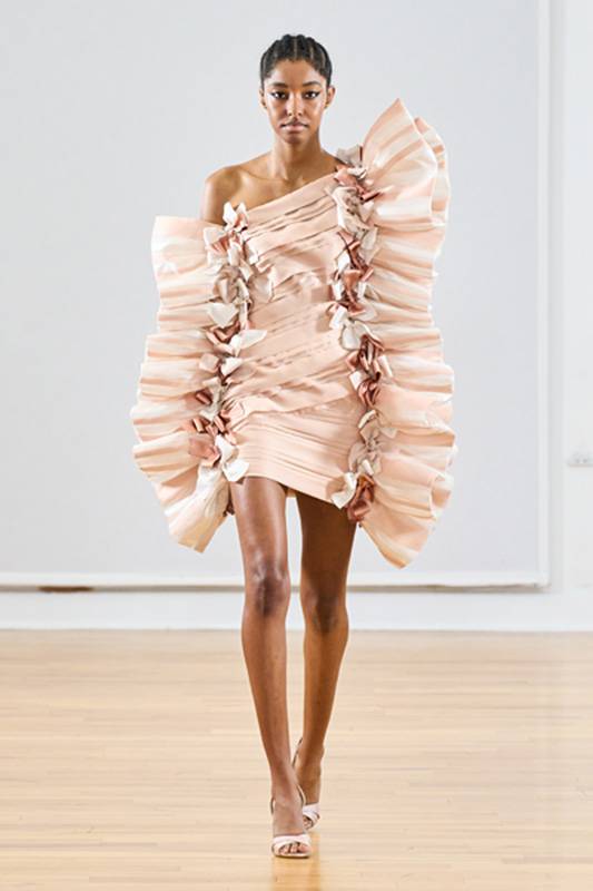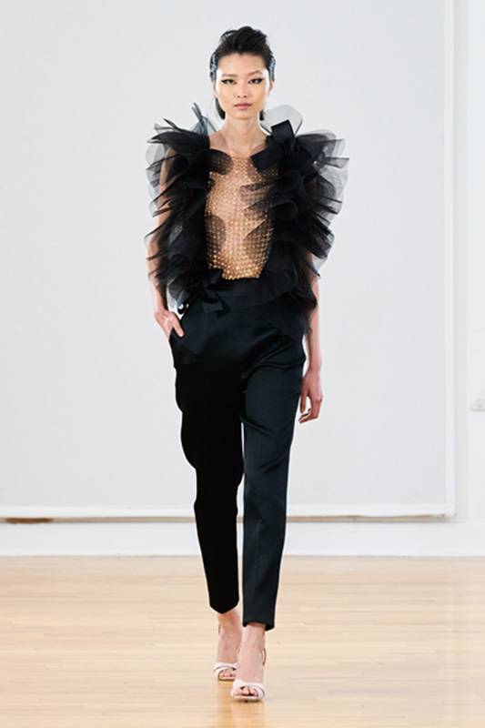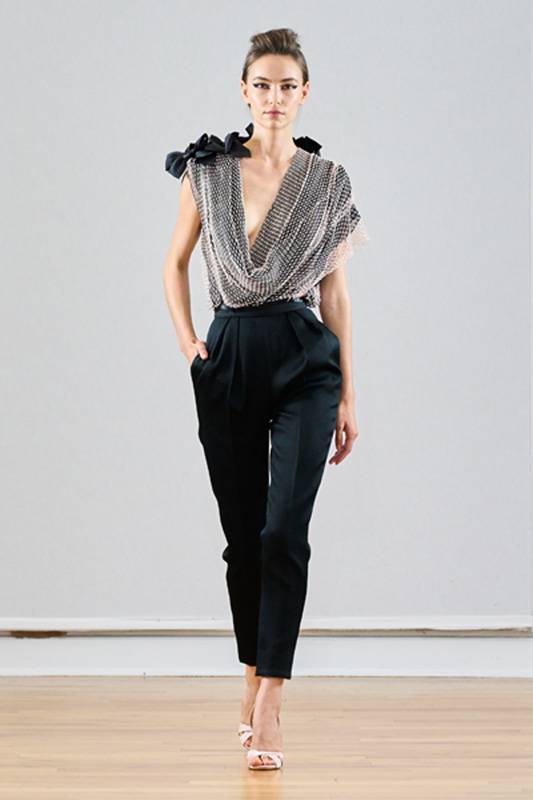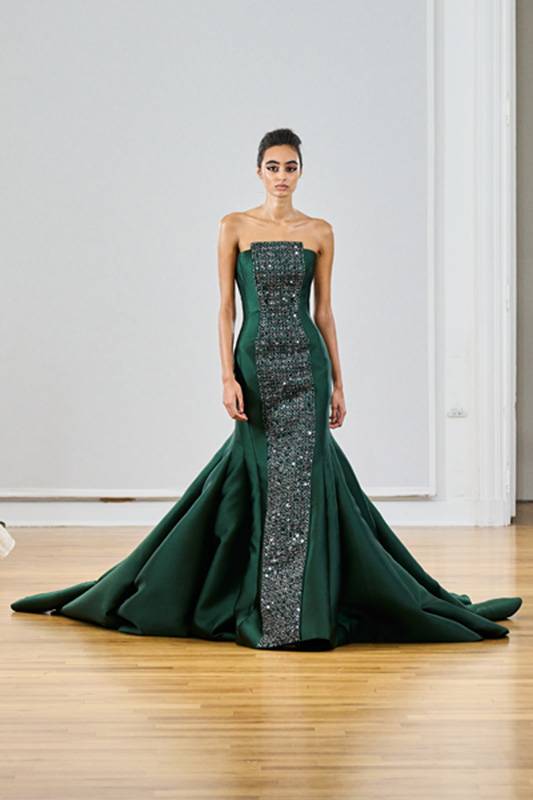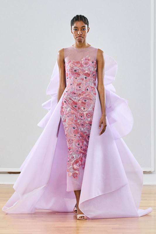 ويجمع العلي بين القصّات المميزة وأحدث التقنيات الموسمية، منطلقاً من بصمة الدار وتاريخها العريق. كما حرص على استخدام الأقمشة الفاخرة التي منحت كل فستان توازناً مثالياً، مثل التافتا والساتان والحرير ثنائي الوجه، مع الحرير القطني والتول. وتبرز في قطع التشكيلة لمسة العلي وحرفيته وحسه الفني، مما زادها عمقاً بفضل استخدامه المميز للتطريز مع التصاميم الدقيقة للخرز الزجاجي وقطع كريستال سواروفسكي وإضافات قماش الأورجانزا المقصوص يدوياً. وتنساب حركة غنية ومفعمة بالأنوثة عبر تصاميم المجموعة، حيث يستخدم المصمم ريش النعام الرقيق والناعم وريش ذيل الديك المخطط مع لمسات الزركشة والتطريز المتقن. وبفضل العمل اليدوي المتقن، تنفرد كل قطعة من التشكيلة بطابعها الخاص، وتحمل بين طياتها قصص الماضي والحاضر التي تميزها، وتعكس طابع الدار من خلال الجمع بين الكلاسيكية والعصرية.