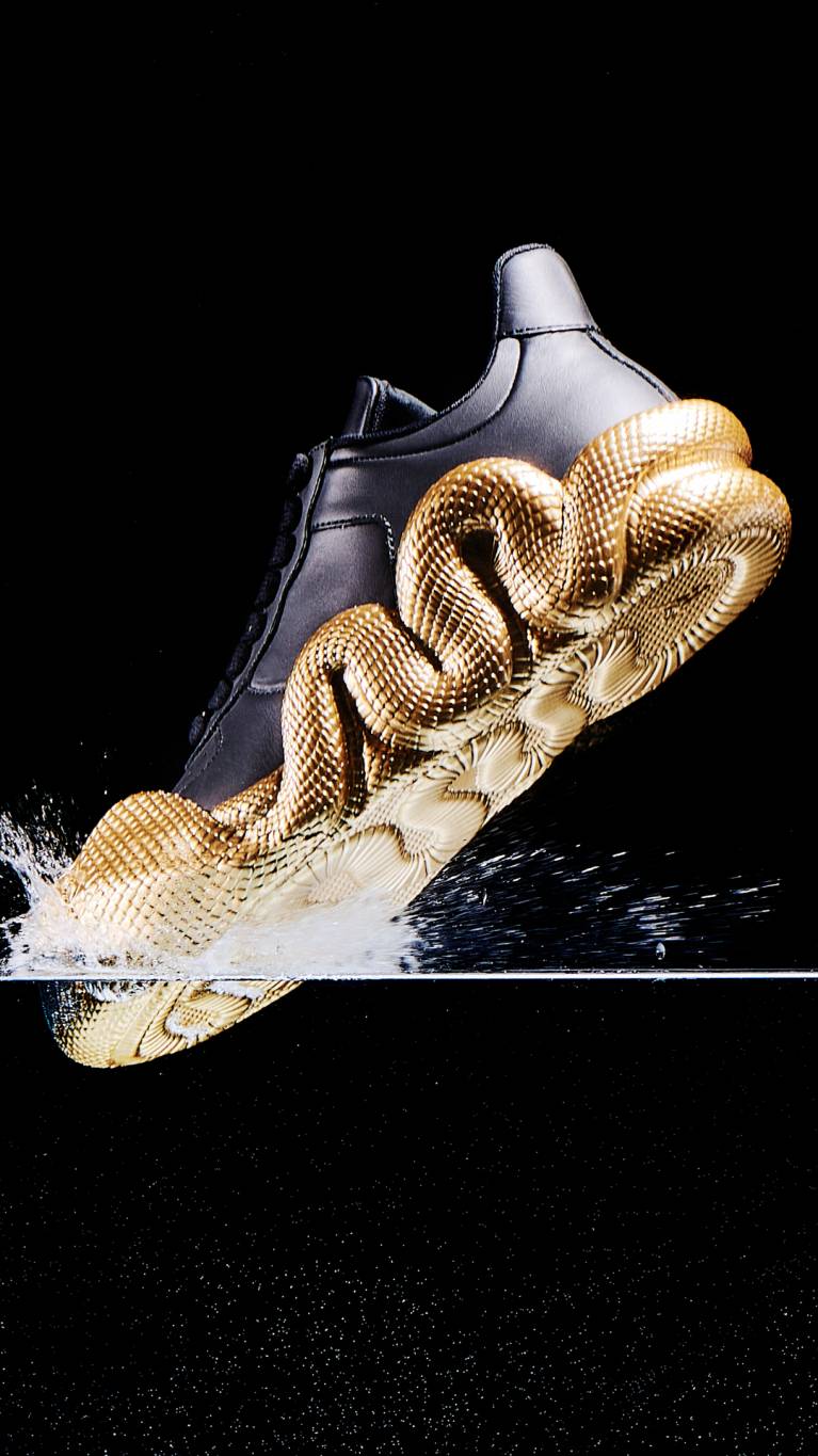 يشبه الحذاء الرياضي "كوبرا النسخة الذهبية" طائر العنقاء الذي يحلّق في آفاق جديدة، وذلك لما يتميز به جسم الحذاء الذهبي المنحوت وعينا الأفعى المرصعتان بالكريستال وكذلك شكل الأفعى المذهّب الذي يظهر مجدداً على نعل الحذاء.