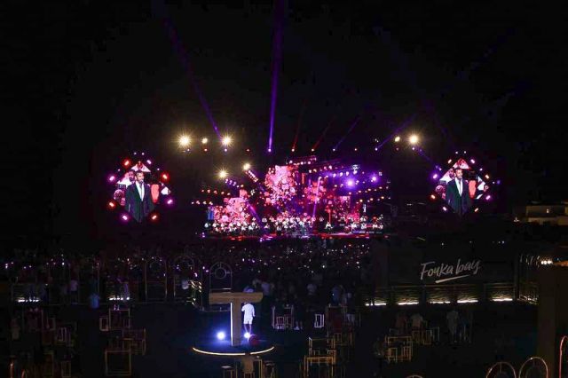 وشهد الحفل لافتة "كامل العدد" وكان الحضور من مختلف الجنسيات العربية، وبمجرد صعود "القيصر" على خشبة المسرح وسط عاصفة من التصفيق الحار، حرص على الترحيب بجمهوره قائلاً: "مع أهلي في مصر والحمد لله أزمات وعدّت... وإن شاء الله يكون هذا البلد رائع بوجودكم وهمّتكم وعزيمتكم... ودائماً نحمل لكم كل المحبّة والتقدير في كل مكان نتواجد فيه... مساؤكم حلو".