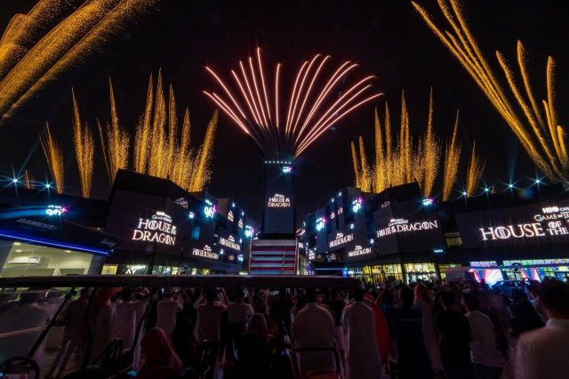 واستمرت الاحتفالات في مدينة العلا السعودية، التي تعتبر موطناً لسلسلة من المواقع التاريخية والأثرية الواقعة في شمال غرب المملكة، والتي تضم بعضًا من أروع المواقع في العالم وجمال طبيعي رائع، ولها أهمية ثقافية يعود تاريخها إلى آلاف السنين. وزينت OSN+ التكوين الصخري الطبيعي الأيقوني، حجر الفيل الصخري، بـرمز House of the Dragon. ورافق هذا العرض المذهل جمجمة تنين Balerion عملاقة شوهدت في ديوان جبل أثلب، أحد أكثر مواقع الحِجر روعة، وداخل المناظر الطبيعية الخلابة لوادي الفن.