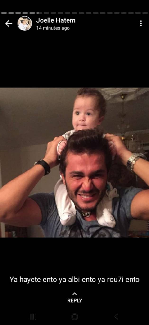 وقالت حاتم في تعليقها على الصور عبر حسابها الرسمي في تطبيق "إنستغرام": "جورج خليل الرّاسي ما بموت هوّي موجود معي وبقلبي وضميري. عطاني إبنّا جو جورج الرّاسي أجمل هدية بالكون". وأضافت: "جورج حبيبي، بعرف إنّك عم تشوفني. أنا بوعدك وحياة إبنّا جو إنّي كون قد الحمل، وبس إضعف إنت مدّلّي إيدك. بحبّك لحدود الإدمان".