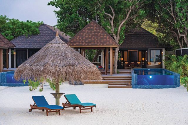 * فيلا الغروب الشاطئية Sunset Beach Villa: واحة من الأناقة والرقي والهدوء تتيح الاستمتاع بمنظر البحيرة الفيروزية في الصباح، وروعة غروب الشمس في المساء. هذه الفيلات هي من الأكبر على الإطلاق في المالديف، مع حديقة خاصة مطلة على الشاطئ وشرفة جميلة بحيث يستمتع نزلاؤها بالمساحة الشاسعة والفخامة المطلقة مع ميني بار مجاني يعاد ملؤه كل يوم، وآلات لصنع الشاي والقهوة. إنها الخيار المثالي لقضاء شهر العسل.