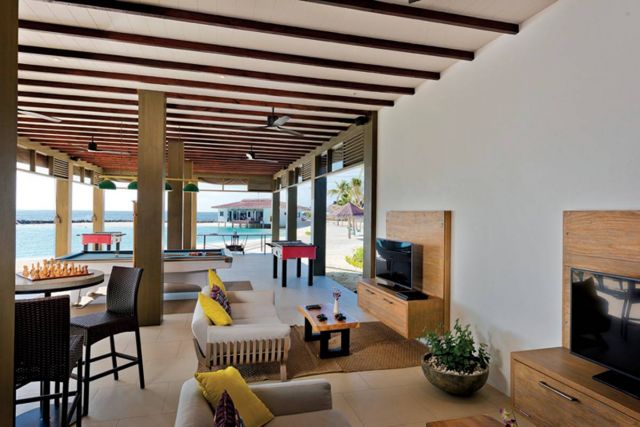 وإذا كانت الأمواج عالية، يمكن السباحة في المسبح الكبير والاستلقاء على كراسي التشمّس الموزّعة حوله والاستمتاع بأشعة الشمس المالديفية الحارقة.