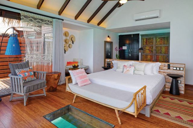 هناك أيضاً 18 فيلا شاطئية، لكلٍ منها مسبحها الخاص، توفر جميعها إقامة مترفة مشبعة بالخصوصية بمحاذاة الشواطئ الرملية البيضاء. تستكنّ هذه الفيلات على طول ساحل الجزيرة وسط مساحات خضراء غنّاء مع إمكانية وصول مباشر إلى الشاطئ والبحيرة الشاطئية عبر الرمال الذهبية. الديكور الداخلي لهذه الفيلات تطغى عليه الأجواء البوهيمية العصرية والفاخرة: جدران بيضاء مزيّنة بقبّعات قش وسلال محبوكة يدوياً، وأقمشة برتقالية وزرقاء، وستائر من القماش المنسوج، وطاولات من جذوع الأشجار.