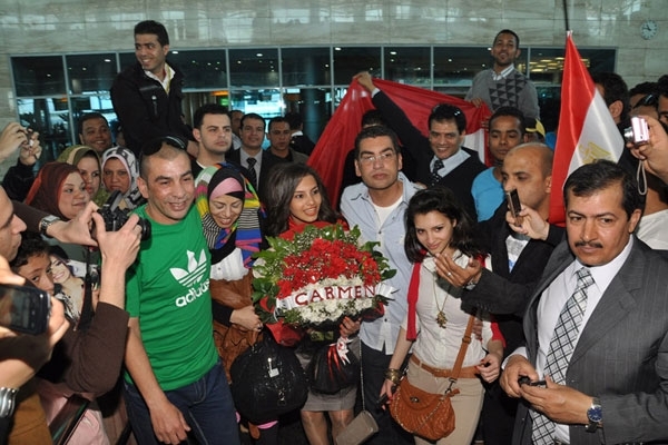 وشهد مطار القاهرة حالة من الارتباك المروري عقب وصول كارمن، وحدثت بعض المشادات بين رجال الأمن ومراسلي الصحف والقنوات الفضائية بحجة الحصول على تصريحات للتصوير.