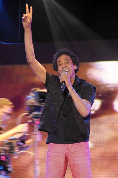 وأكمل حفلته بتقديم أغنياته الشهيرة ومنها "هيلا هيلا" و"عصفور" و"الفرصة" و"دايرة الرحلة" و"يا أهل العرب والطرب".