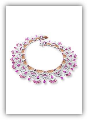 يبرز أيضاً خاتم مرصّع بأكمله بالألماس ومكلّل بألماسة صفراء بوزن 30,63 قيراطاً ولون أصفر فاقع وقطع بيضاوي. إلى جانب عقد ذي زخارف ونقوش رائعة مصنوع من الذهب الوردي ومرصّع بالألماس والسافير الوردي. وقد استوحي تصميم العقد من ياقات الدانتيل التي تحلّت بها أزياء حاشية البلاط في القرن السابع عشر، ليعيد تذكيرنا بالروابط المتينة التي تجمع بين الحِرف الفنية في عالم الأزياء.