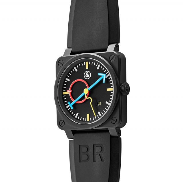 في الوقت عينه، مسار الدقائق هو بالكامل منBell & Ross ، يعبر عن طباعة الأحرف القوية المستمدة من أدوات قمرة القيادة. لتوفير حركة مميزة إضافية من الطاقة البصرية، تحولت العلامات الأساسية الأربعة أيضًا إلى اللون الأصفر الأساسي. وفي الوقت نفسه، يتسم تاج الساعة بشعار عطف (&) محفور.