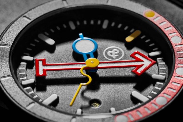 يقول سيلبرستين Silberstein، "أردت أن تتميز الساعة بالرؤية العالية للعقارب المضيئة للساعة والدقائق والإطار، بحيث تعمل بشكل مثالي كساعة غوص، حتى لو كانت ساعة فنية جذابة." لذلك، تتميز هذه الساعة بالاستخدام الأول لعقرب "Maxi"من سيلبرستين Silberstein، وعقرب دائري أزرق مع قطع مضيئة ضخمة لدلالة عن الساعات، ومثلث أحمر ضخم مرصع بمادة مضيئة لعقرب الدقائق المهم للغاية الذي يوفر قراءة لوقت الغوص الذي انقضى.
