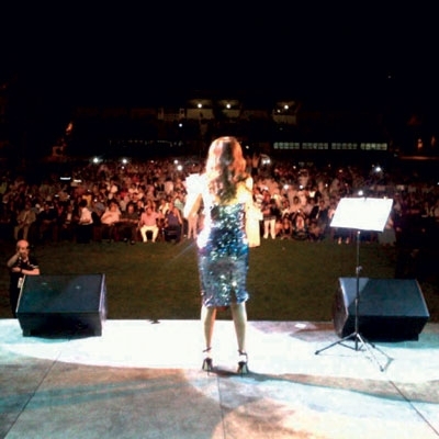 ولم ترض الفنانة بالمسافة الفاصلة بين المنصّة ومكان جلوس الجمهور، وقالت إن هذا الأمر يشعرها بأنها تغني وحدها، فطلبت من الحاضرين أن يسألوها تأدية أغان معينة بحيث بنت جسورا من التواصل معهم.