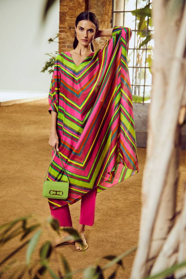 تضم هذه المجموعة تصاميم رمضانية تقليدية وعصرية، وتتلاعب بالأحجام والنِّسب مع أقمشة رائعة من الحرير والقطن والكريب، كما تأتي مع طبعات زهور أو بنسخ من كتل الألوان، مع التركيز على توفير الراحة لتسهيل الانتقال من النهار إلى الليل.