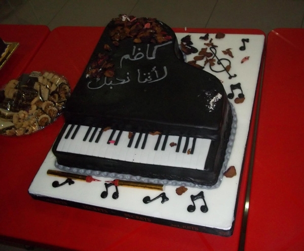 "لأننا نحبّك" هكذا كتب صديق كاظم الساهر على قالب الحلوى الذي أصرّ أن يكون على شكل بيانو لما لهذه الآلة من اعتبار عند قيصر الغناء. قالبان آخران كتب عليهما happy birthday كاظم وضعا على الطاولة بانتظار قدوم كاظم من تصوير البرومو الخاص بالبرنامج ومفاجأته. قاربت الساعة الحادية عشر والكل في انتظاره، إلى أن حانت الساعة وكانت المفاجأة لكاظم.