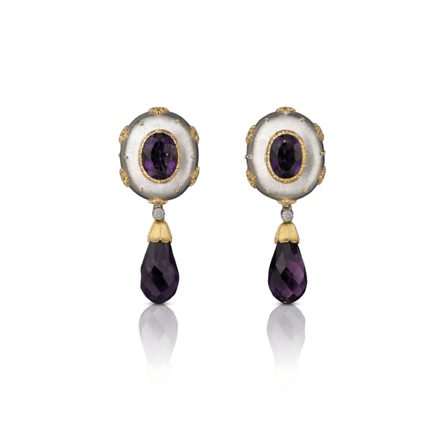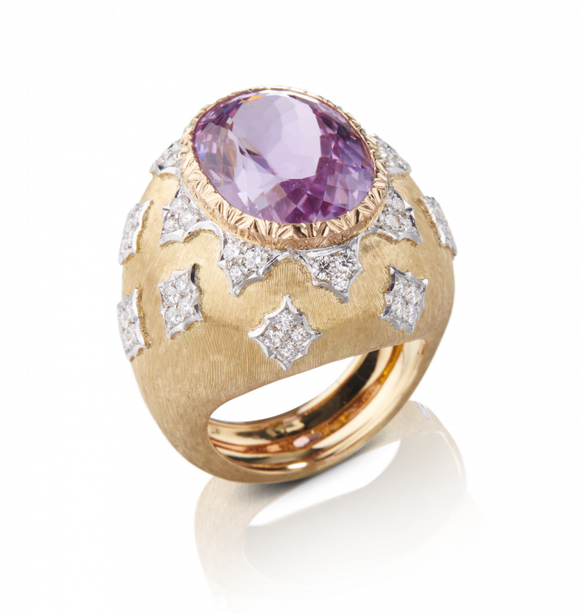 تعانق انسيابية الأشكال، بفضل نعومة نقوش "ريغاتو"rigato و"أورناتو" ornato حيوية الأحجار الكريمة في أناقة مذهلة، الأمر الذي لطالما كان وراء الأسلوب المميز تماماً لدار "بوتشيلاتي". بالإضافة إلى ذلك، يُبرز التباين المتمثل في استخدام الذهب بألوان مختلفة، التأثير الخلاّب والألوان الجذّابة بقوة لهذه الإبداعات.